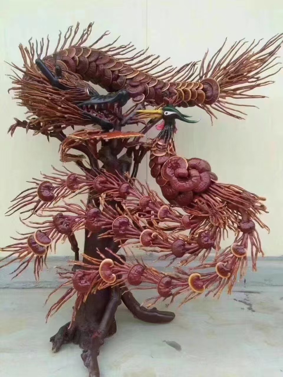 灵芝盆景是在灵芝生长阶段,采用嫁接等措施生产造型灵芝,再通过后期工艺加工,然后再结合古代和现代的盆景工艺,生产出品味极高的艺术盆景。它既是吉祥物,又是艺术品,更是尊贵身份和高雅品位的象征。