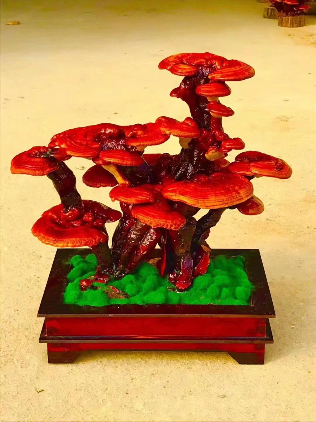 灵芝盆景是在灵芝生长阶段,采用嫁接等措施生产造型灵芝,再通过后期工艺加工,然后再结合古代和现代的灵芝盆景是在灵芝生长阶段,采用嫁接等措施生产造型灵芝