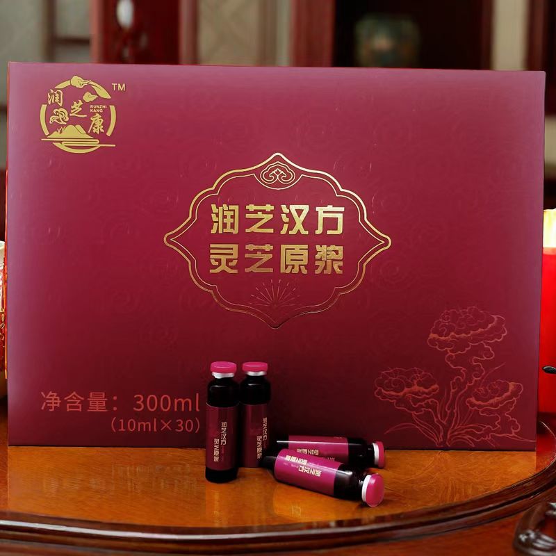 规格:每盒30支,每支10ml, 礼盒装,每天1-2支可以直接喝的灵芝,菌香味浓, 口齿留香,味道独特为国人研制的营养品, 自然营养,病弱养护,增添活力